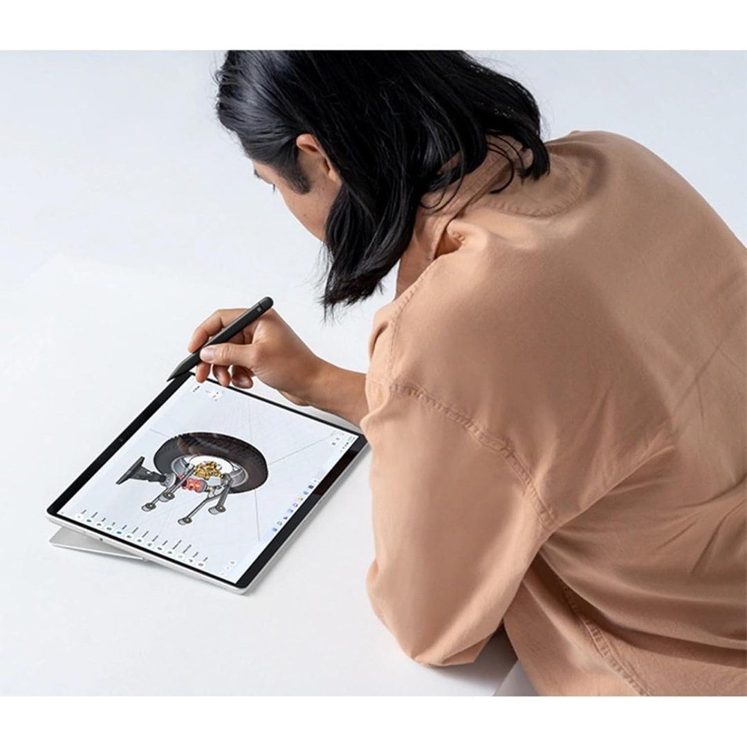 El Microsoft Surface Slim Pen 2 es un lápiz digital avanzado diseñado para ser compatible con múltiples dispositivos Surface y otros que admitan el protocolo Microsoft Pen Protocol (MPP). Este lápiz ofrece una experiencia natural de escritura y dibujo, emulando la sensación de lápiz sobre papel gracias a un motor háptico que proporciona retroalimentación táctil. Es ideal para tareas como tomar notas, bocetar y sombrear con precisión, ya que admite 4096 niveles de sensibilidad a la presión y un ángulo de inclinación de 77°.