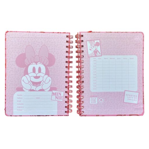 La libreta espiral Mooving Minnie en formato A5 es perfecta para acompañarte en tu día a día, ya sea en el colegio, universidad u oficina. Con un diseño práctico y compacto, cuenta con 96 hojas lineadas ideales para tomar apuntes, hacer resúmenes o escribir ideas. Su encuadernación espiral permite una apertura total de 360°, facilitando la escritura en ambas caras de la hoja. Además, su tapa resistente protege el contenido y aporta durabilidad. Ideal para quienes buscan organización y estilo en un solo producto.