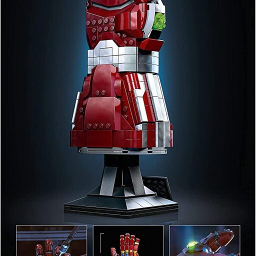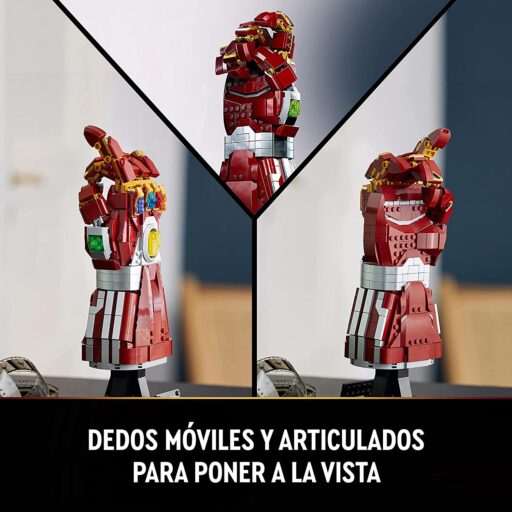 Esta recreación Lego del emblemático Nanoguantelete seguro que cautivará a quienes la vean. Diseñada para modelistas adultos, la pieza para construir y exponer, de vibrantes colores, posee dedos articulados móviles y viene acompañada de una sólida base que incorpora una placa descriptiva.