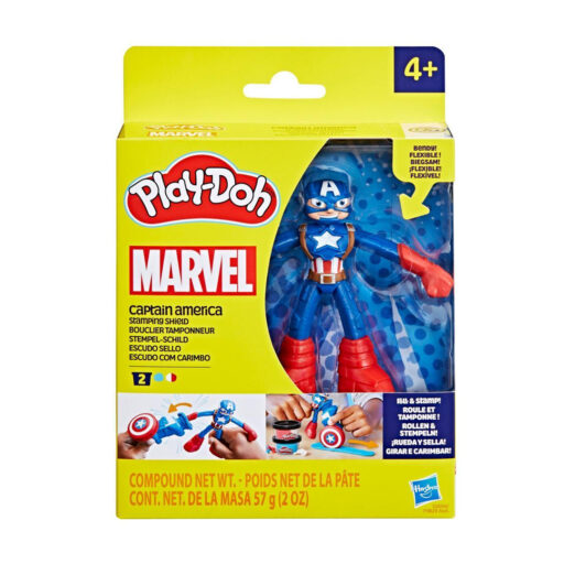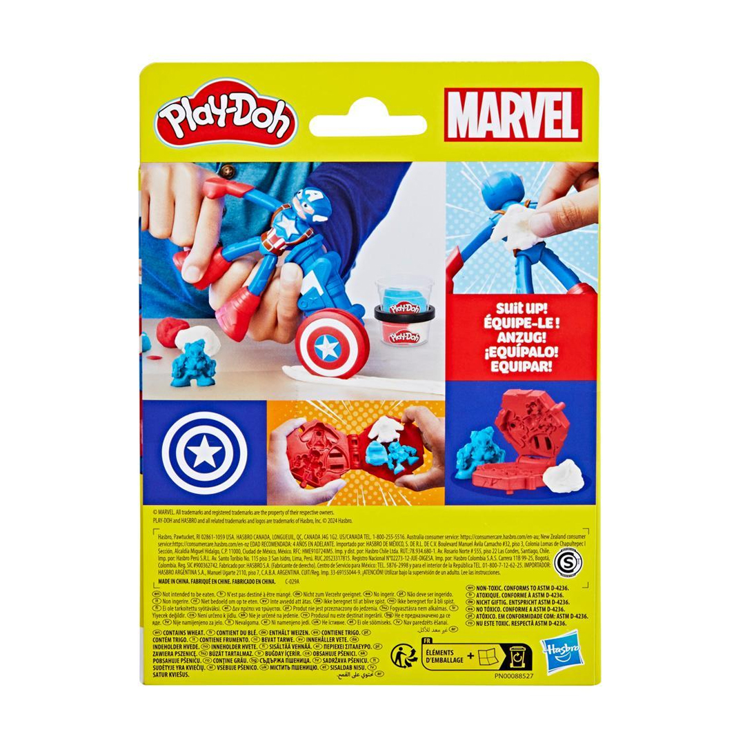 - CAPITÁN AMÉRICA SUPERFLEXIBLE: El poder de la creatividad está en las manos de los más pequeños con este set Play-Doh que incluye una figura de 10 cm del Capitán América con brazos y piernas flexibles y un molde en el pecho
