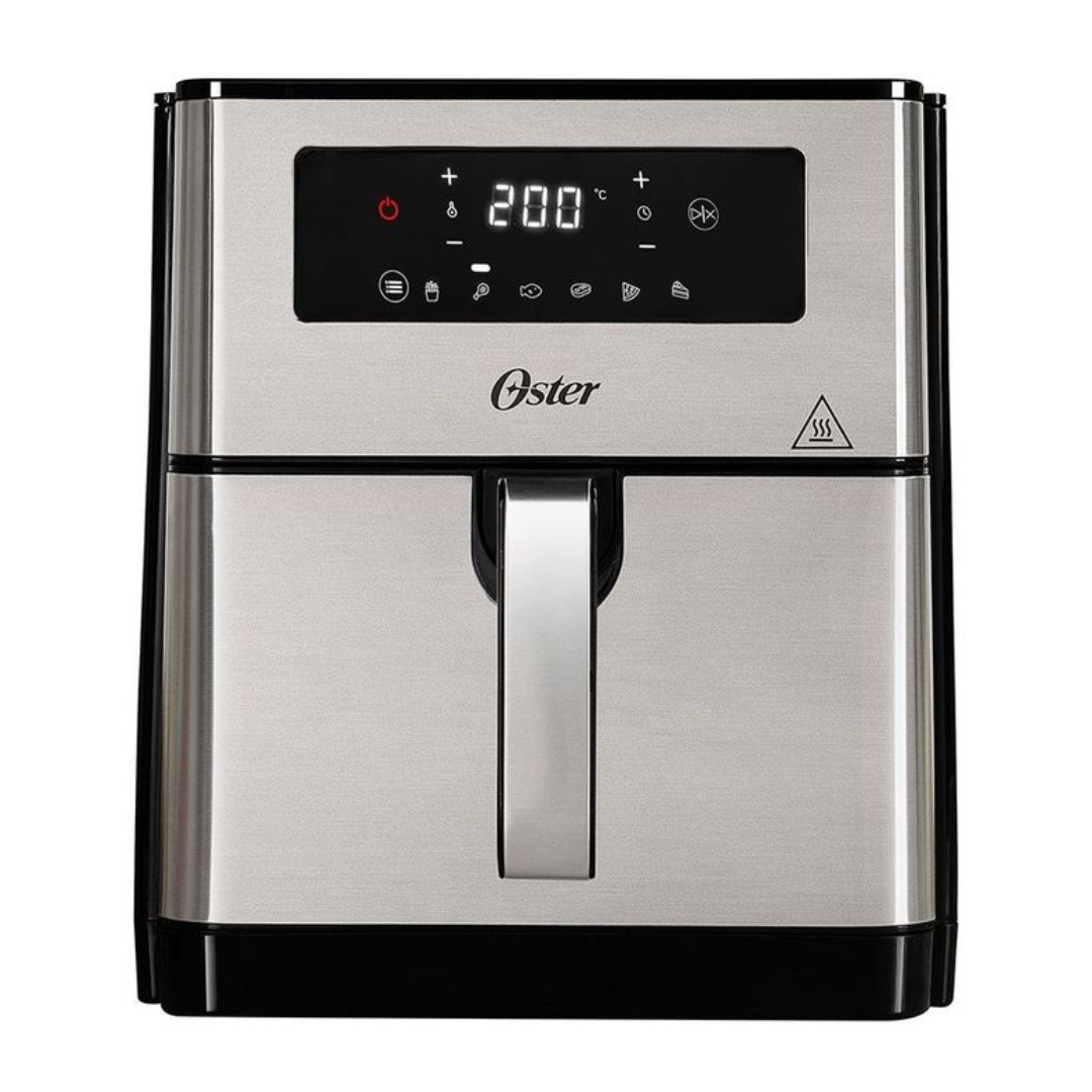 La freidora de aire Oster® con recubrimiento DiamondForce tiene una capacidad extra grande de 9L cuenta con un panel digital y 6 funciones preprogramadas para cocinar papas fritas, pollo, pescado, carne, pizza, y hornear. Su capacidad extra grande te permite cocinar un pollo entero de hasta 2,9 kgs (6,3 lbs). El revestimiento DiamondForce de la rejilla para freír está reforzado e infundido con partículas de diamante que forman una matriz estructural, creando un revestimiento 12 veces más duradero y resistente a rayaduras* y hasta 15 veces más fácil de limpiar*. Es un recubrimiento fuerte y superior al de cualquier otro de su tipo. Esto ayuda a que los alimentos tengan el sabor que te gusta y la grasa no se quede ni en ellos, ni en la rejilla. Por lo tanto son más sanos, y la rejilla es increíblemente fácil de limpiar. La opción de freír con aire utiliza hasta un 99,5% menos de aceite** para comidas saludables y deliciosas.