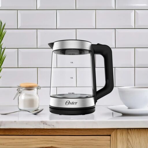 El hervidor eléctrico Oster® de 1.8 L de vidrio con infusor para té combina comodidad, funcionalidad y elegancia. Su diseño 2 en 1 permite preparar té directamente en el hervidor con su práctico infusor de acero inoxidable. Con 1850 W de potencia, hierve agua rápidamente y su jarra de vidrio no absorbe sabores ni olores, garantizando una buena infusión. Su sistema de iluminación LED indica cuando el proceso de calentamiento ha comenzado y se apaga al llegar a ebullición o al apagarlo manualmente. Además, incluye un sistema de apagado automático para evitar sobrecalentamiento, brindándote mayor seguridad. Este hervidor cuenta con una base antideslizante diseñada con un compartimento para enrollar el cable, una tapa con asa que se abre fácilmente y un asa ergonómica isotérmica que no se calienta, asegurando comodidad en cada uso. Su diseño moderno y elegante lo convierte en el complemento perfecto para cualquier cocina.