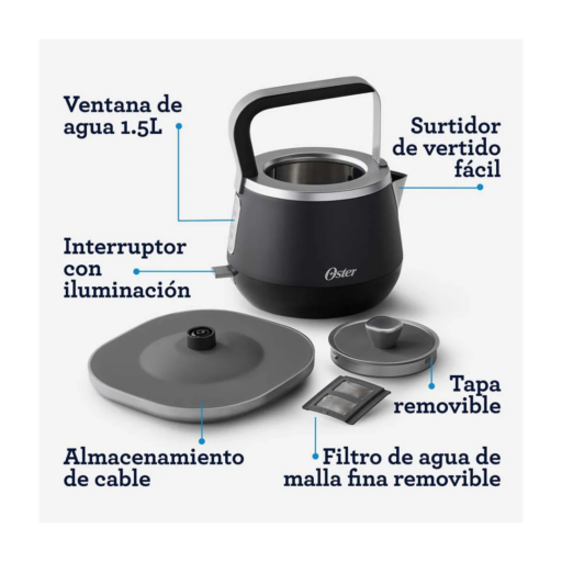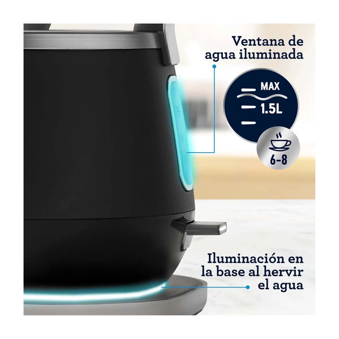 Eleva el estilo y la funcionalidad de la cocina con un hervidor eléctrico premium diseñado para un uso seguro y eficiente. Combina un diseño arquitectónico moderno con materiales resistentes y una iluminación integrada que indica el funcionamiento del equipo. Su capacidad permite preparar varias tazas a la vez, mientras que el sistema de apagado automático y la protección contra hervido en seco aportan tranquilidad durante el uso. El filtro de malla removible facilita la limpieza y la base giratoria ofrece comodidad desde cualquier ángulo.
