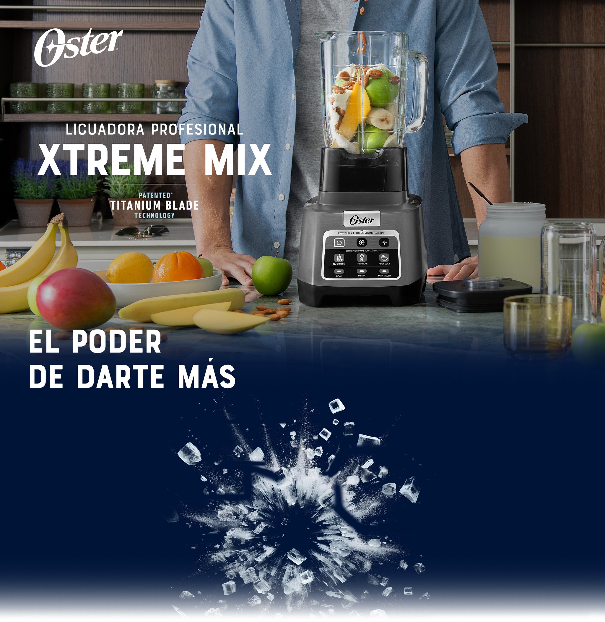 La Oster Licuadora Profesional Xtreme Mix BLSTXPG-BGW combina potencia, durabilidad y versatilidad en un solo equipo. Equipada con un motor de 1500W y cuchillas de titanio con tecnología reversible, permite triturar hielo, procesar alimentos y preparar mezclas homogéneas con rapidez y precisión. Su vaso de vidrio Boroclass de 2 litros resiste choques térmicos de hasta 90°C, garantizando seguridad y larga vida útil.