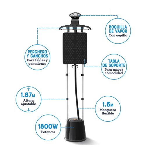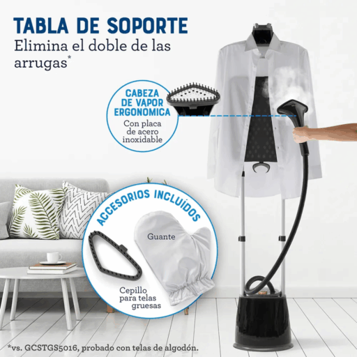 - Vaporizador de prendas con tabla de soporte, para ayudar a remover las arrugas confortablemente