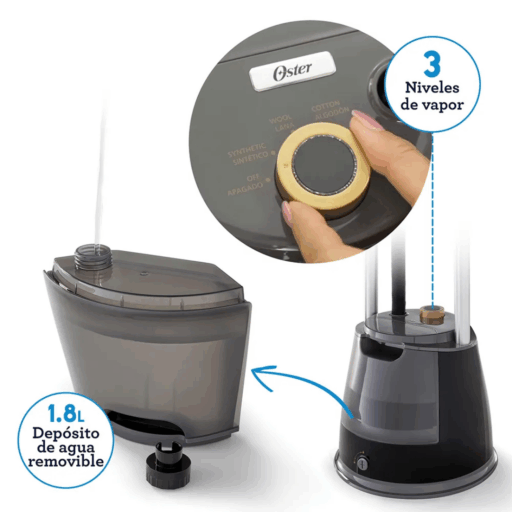 - Tanque de agua removible de 1.8 L de agua, fácil de llenar y con clara visión del nivel de agua