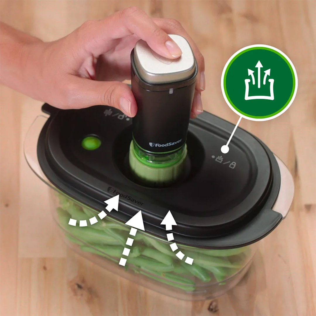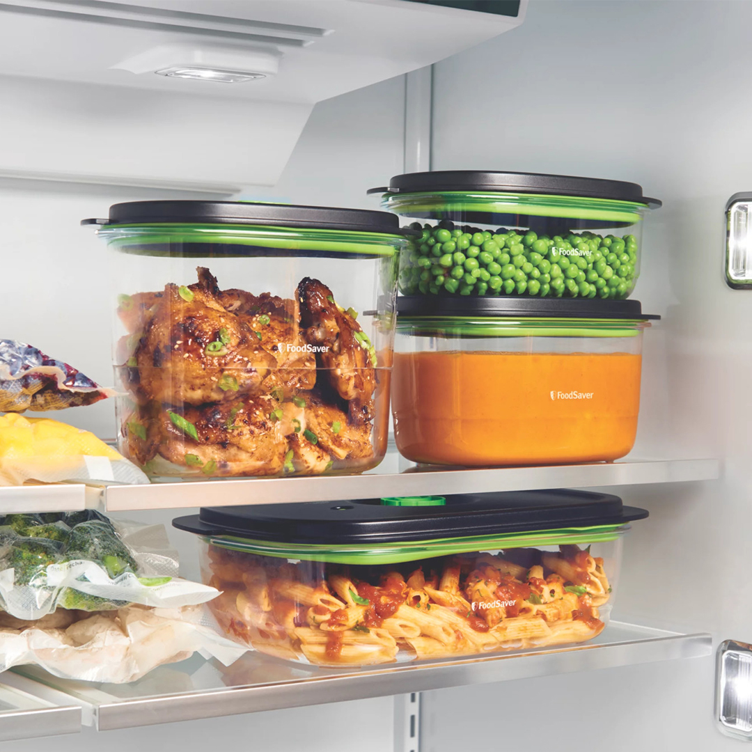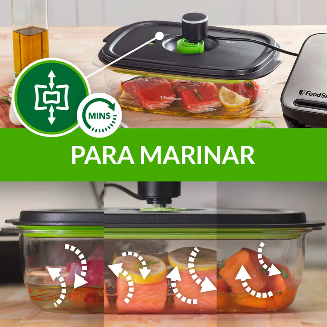 De material Tritan®, es libre de BPA y al usarlo con los sistemas de sellado al vacío FoodSaver® tus alimentos quedan al vacío para que puedas mantener la frescura, olor, textura y nutrientes.