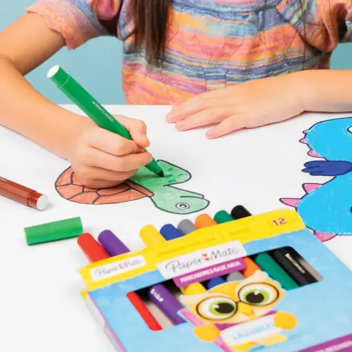Los marcadores Jumbo Paper Mate con punta bala ofrecen colores intensos y trazos uniformes, perfectos para proyectos escolares y actividades creativas. Su tinta lavable permite una limpieza sencilla en la mayoría de las superficies, brindando seguridad para niños y comodidad para adultos.