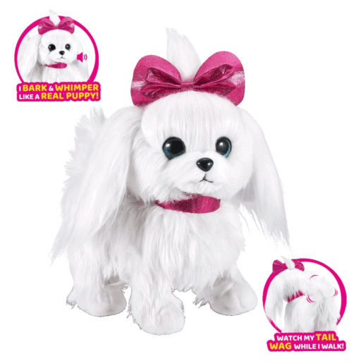 • Camina hacia adelante y hacia atrás con ladridos realistas.