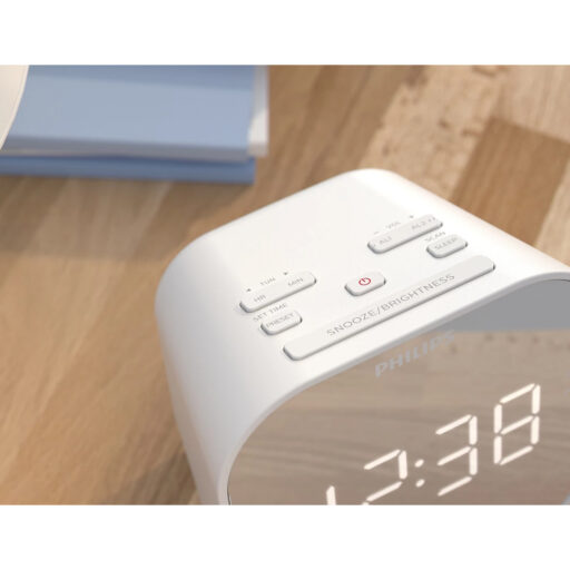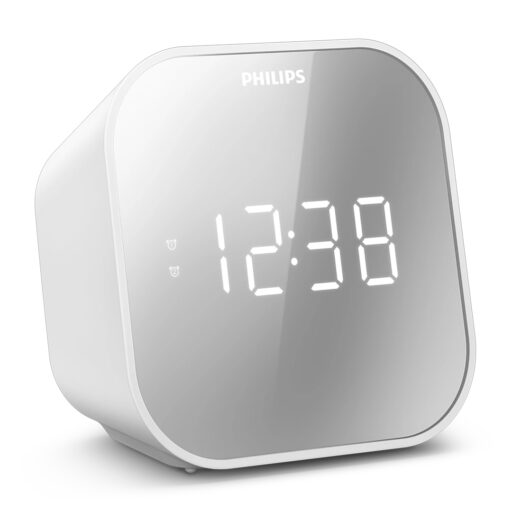El radio reloj Philips TAR4406 combina funcionalidad y diseño elegante en un solo dispositivo. Con su acabado en espejo blanco, este despertador no solo cumple con su propósito principal, sino que también aporta un toque moderno a cualquier espacio. Su pantalla LED grande y clara facilita la visualización de la hora, mientras que su sintonizador FM te permite despertar con tu estación de radio favorita. Además, su puerto USB integrado te permite cargar dispositivos móviles mientras duermes, haciendo de este radio reloj una opción práctica y versátil.