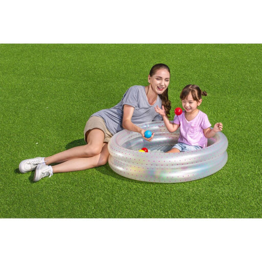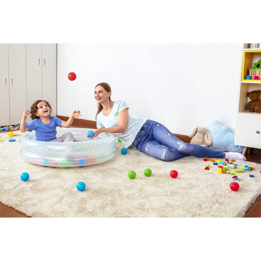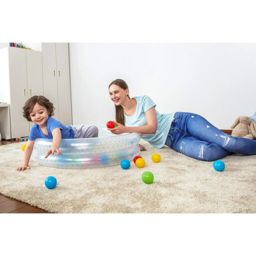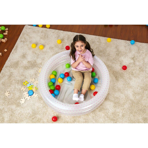 La piscina de pelotas de 2 anillos Up In & Over™ es una alternativa más higiénica a las piscinas de pelotas comerciales. Con 50 pelotas de varios colores, los peques disfrutarán con esta piscina de pelotas en su propio salón. Cuando haga buen tiempo, llena la piscina de agua y disfruta de una refrescante experiencia acuática. Hay dos opciones de colores disponibles: azul claro o rosa pálido. Las resistentes paredes laterales proporcionan un apoyo mullido y, a su vez, se desinflan fácilmente para que la guardes sin problemas.