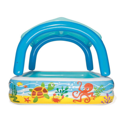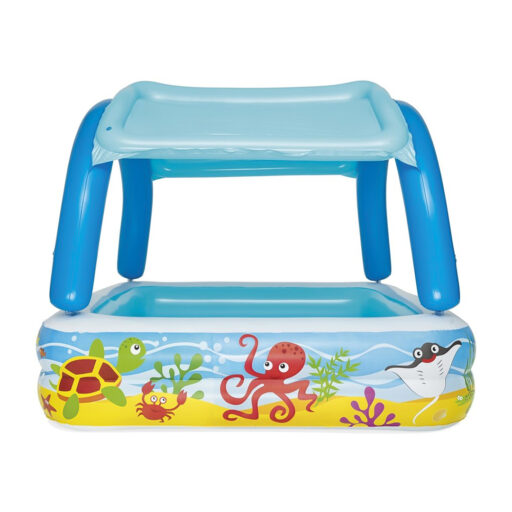 La Piscina de Juegos con Toldo Bestway® proporciona una diversión sin fin a cualquier niño al que le guste la vida en el mar y salpicar en el agua. El toldo incorporado cubre la piscina para una agradable experiencia a la sombra. Equipada con tecnología UV Careful™, el toldo solar proporciona a tu pequeño una diversión segura y a la sombra bajo el sol. Y lo que es mejor, el toldo es desmontable para que pueda disfrutar de los rayos del sol cuando la temperatura sea la adecuada. La piscina de Juegos con Toldo H2OGO! es la piscina definitiva para salpicar al sol durante todo el verano.