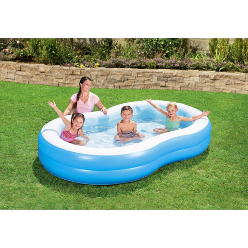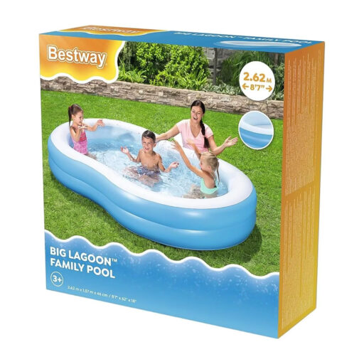 Diseñada para que los niños (y los adultos) se muevan, jueguen y salgan de la casa, esta piscina familiar de Big Lagoon está probada con calidad y vuelve a centrarse en la diversión. Ideal para la diversión familiar bajo el sol, esta piscina en forma de laguna está hecha de resistente vinilo previamente probado y está construida con 2 anillos iguales. Con paredes laterales extra anchas, esta piscina es ideal para que las familias más jóvenes se salpiquen y jueguen al sol. Y desmontarlo es muy fácil con la válvula de drenaje fácil de usar. Salpicar al sol nunca ha sido tan divertido como con la piscina familiar Big Lagoon de Bestway. Pisc. Inf asimetrica Laguna Azul 2.