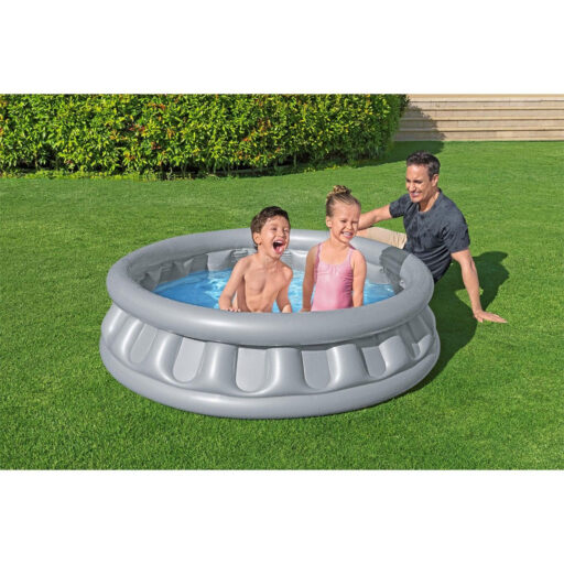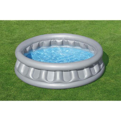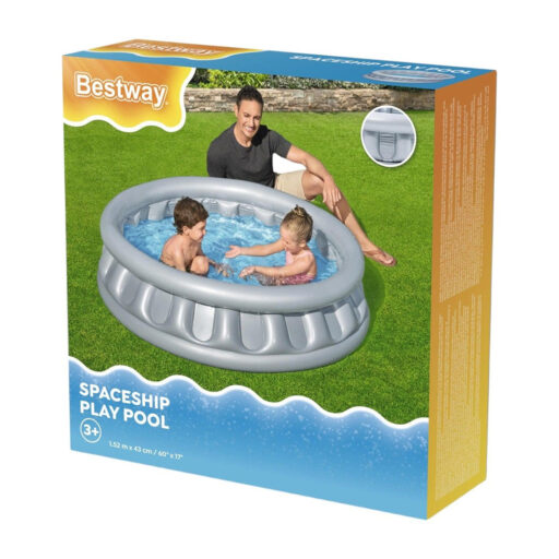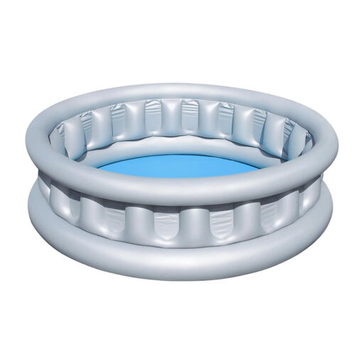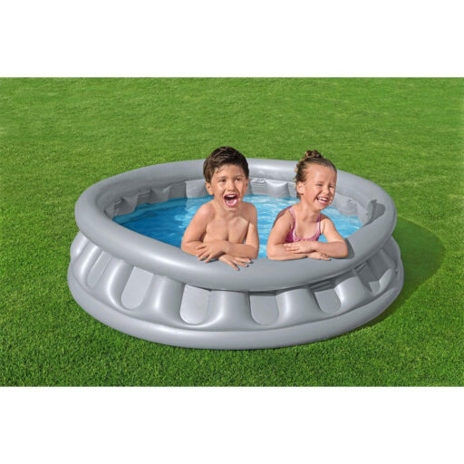 ¡Diseñado para que los niños se muevan, se muevan y salgan de la casa, esta Piscina de Naves Espaciales ha sido probada y pone el foco en la diversión! ¡La piscina espacial viene en un diseño verdaderamente único en forma de platillo volador plateado! ¡El forro exterior acolchado incluso se parece a los puertos y las aletas de un accesorio de película de platillo volador de Hollywood de los años 50! Los niños pueden divertirse fuera de este mundo chapoteando en la piscina en un día soleado con amigos. Además, la piscina es fácil de instalar: simplemente infle las 3 cámaras de aire con una bomba de aire y llénela con agua. Salpicar al sol nunca ha sido tan divertido como con el Space Ship Pool.