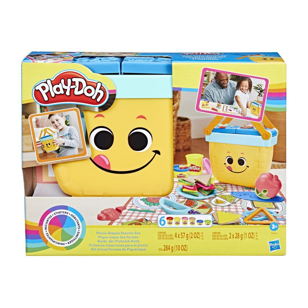 Llueva o truene, ¡el Picnic Shapes Starter Set es un juego de picnic perfecto para niños en cualquier momento! Viene con 12 herramientas de inicio, 6 colores Play-Doh y una canasta de picnic de juguete que almacena las herramientas. A medida que los niños exploran formas básicas como cuadrados, círculos y triángulos, pueden usar su imaginación y apilar esas formas en sándwiches Play-Doh. Imagine historias de picnic simuladas con bocadillos tontos e insectos en el lado de la manta de picnic del tapete de juegos o voltéelo para crear divertidas actividades de secuenciación de formas para niños. Ya sea su primer set de inicio Play-Doh o un regalo para niños de 3 años en adelante, ¡déjalos descubrir la alegría de los juguetes Play-Doh!
