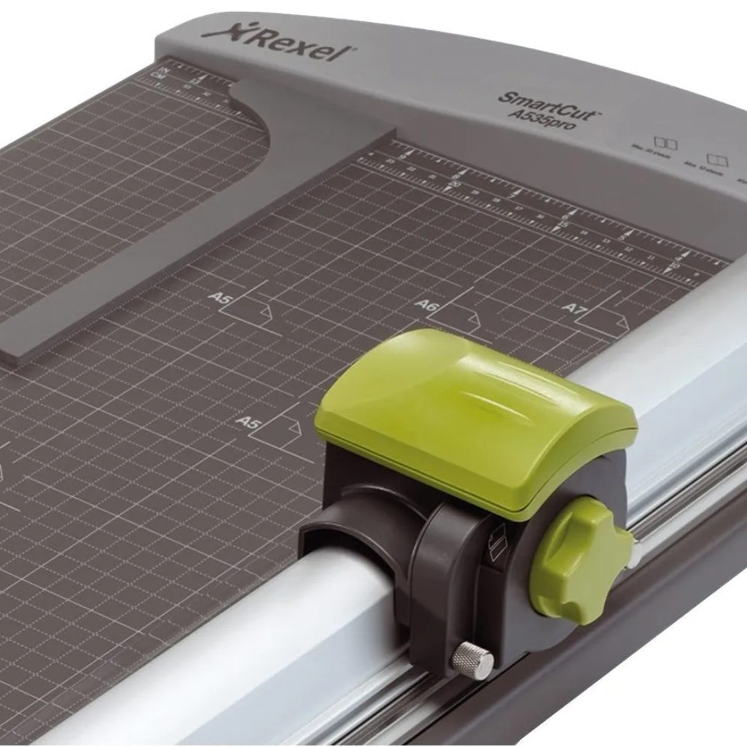 La Guillotina de Rodillo Rexel SmartCut A535 Pro 3 en 1 es una herramienta profesional diseñada para tareas de corte de gran volumen en oficinas, centros educativos y entornos creativos. Su sistema Dial-a-Blade permite seleccionar entre tres estilos de corte (recto, perforado y prepicado) sin necesidad de cambiar físicamente la cuchilla, lo que mejora la eficiencia y la seguridad del proceso.