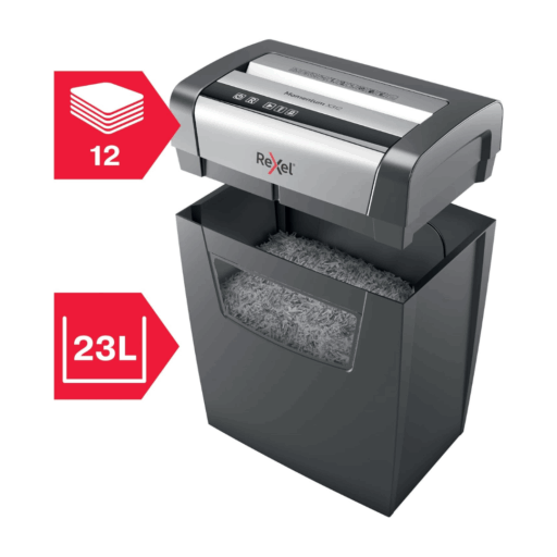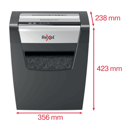 La Destructora de Papel Rexel Momentum X312 es una solución eficiente y segura para la destrucción de documentos confidenciales en entornos domésticos o de oficina pequeña. Con un nivel de seguridad P-3, realiza un corte confeti de 5 x 42 mm, asegurando la confidencialidad de la información. Su capacidad de destrucción de hasta 12 hojas por pasada y su papelera de 23 litros permiten un uso prolongado sin necesidad de vaciado frecuente. Además, su funcionamiento continuo de 6 minutos, tecnología antiatasco con inversión automática y capacidad para destruir grapas y clips pequeños la convierten en una herramienta versátil y práctica. Su diseño compacto y silencioso la hace ideal para espacios reducidos y ambientes que requieren baja emisión de ruido.