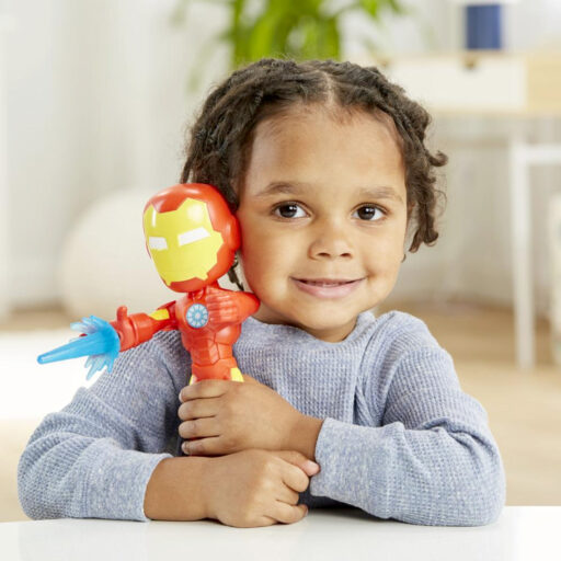 - Puedes colocar el rayo repulsor incluido en la muñeca de la figura de Iron Man y mover su cabeza y sus brazos en divertidas poses de acción