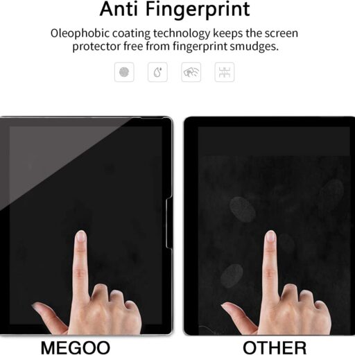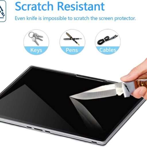 - Fácil instalación: el método único de «bisagra» y las instrucciones en video hacen que sea increíblemente fácil alinear perfectamente tu protector de pantalla sin burbujas molestas. El pegamento adhesivo puede empujar el aire por sí mismo, simplemente colócalo bien y colócalo hacia abajo, se fija automáticamente a la pantalla sin problemas.