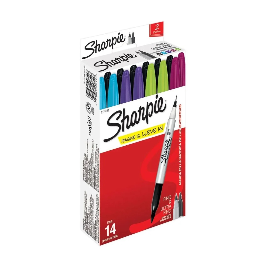 Sharpie Marcador Doble Punta Fina-Ultrafina Surtido Set 12+2