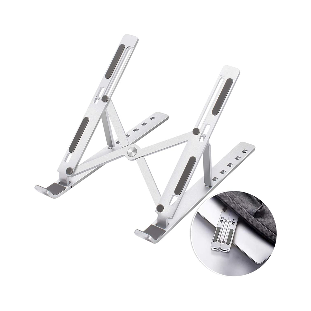 - Plegable y portátil: cuando está plegado, el soporte para portátil es compacto y ligero. Se puede almacenar en la funda de terciopelo que viene contigo.