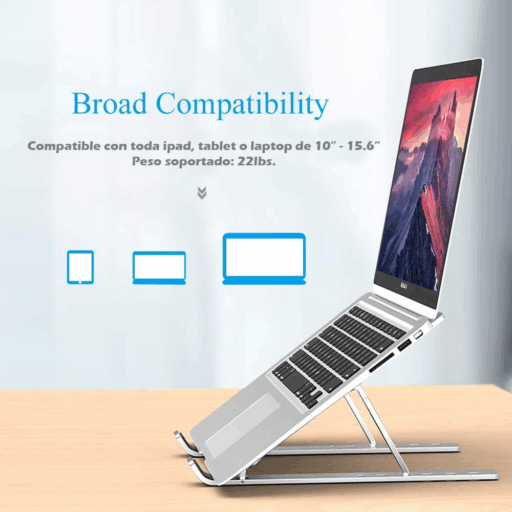 - Compatibilidad: el soporte de computadora FLAGTOP se adapta a todos los portátiles de 10 a 15.6 pulgadas, como MacBook Air, MacBook Pro, Lenovo ThinkPad, Dell Inspiron XPS, HP, ASUS, Chromebook y así sucesivamente. Puede soportar Notebooks de hasta 22 libras.