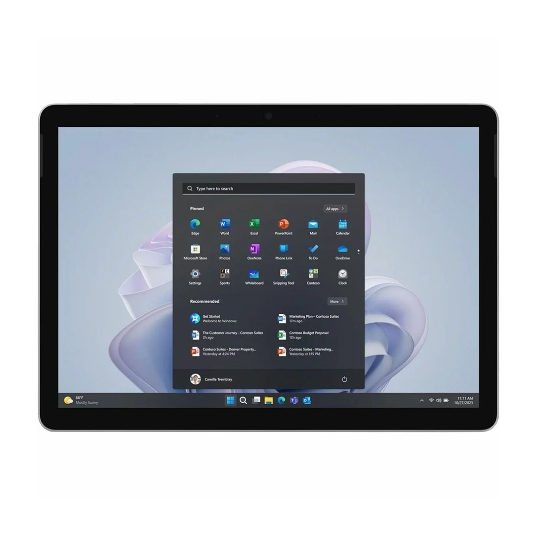 La pantalla táctil PixelSense de 10,5″ con resolución 1920 x 1280 y relación de aspecto 3:2 permite visualizar documentos y contenidos con gran nitidez, además de admitir interacción táctil de 10 puntos y compatibilidad con lápices ópticos como el Surface Pen (opcional). El soporte ajustable facilita la visualización en distintos ángulos, y la opción de añadir un teclado externo convierte al dispositivo en una solución versátil para diferentes entornos de trabajo.