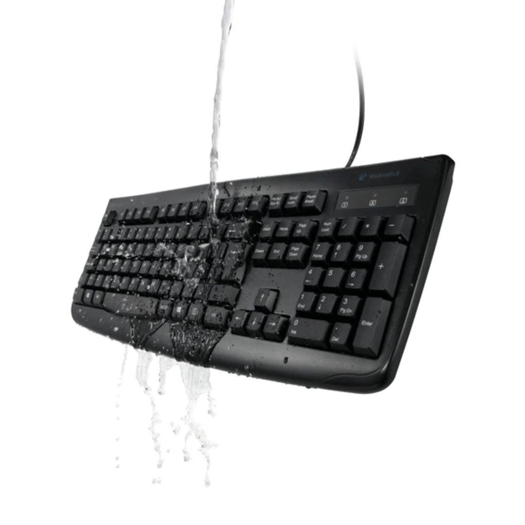 - Teclado diseñado para usarse en muchos entornos diferentes, como hospitales, oficinas gubernamentales, escuelas y más.