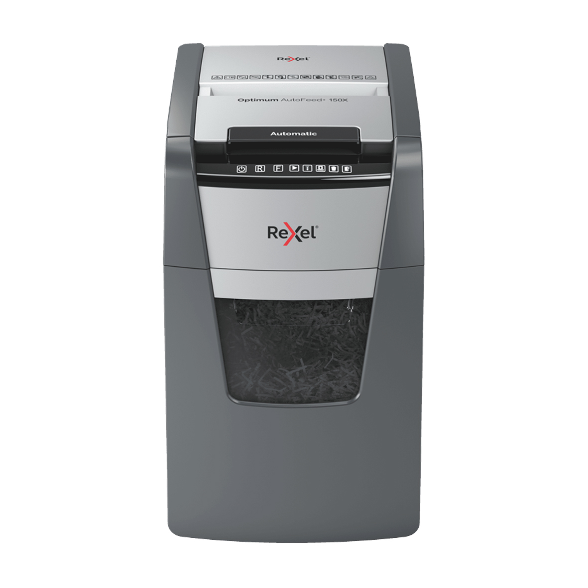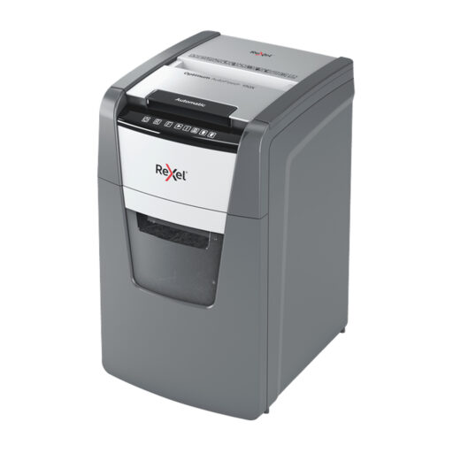 La destructora automática Rexel Optimum AutoFeed 150X está diseñada para ofrecer un rendimiento excepcional en entornos de oficina medianos o grandes. Con su avanzada tecnología AutoFeed, permite la destrucción automática de hasta 150 hojas de papel (80 g/m²) sin intervención manual, optimizando el tiempo y la productividad en el lugar de trabajo. Su sistema de corte en partículas garantiza un alto nivel de seguridad P-4, lo que la convierte en una opción ideal para destruir documentos confidenciales.