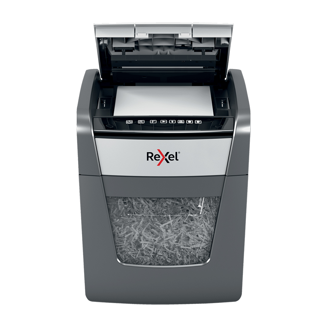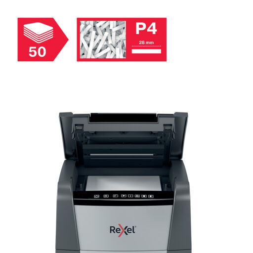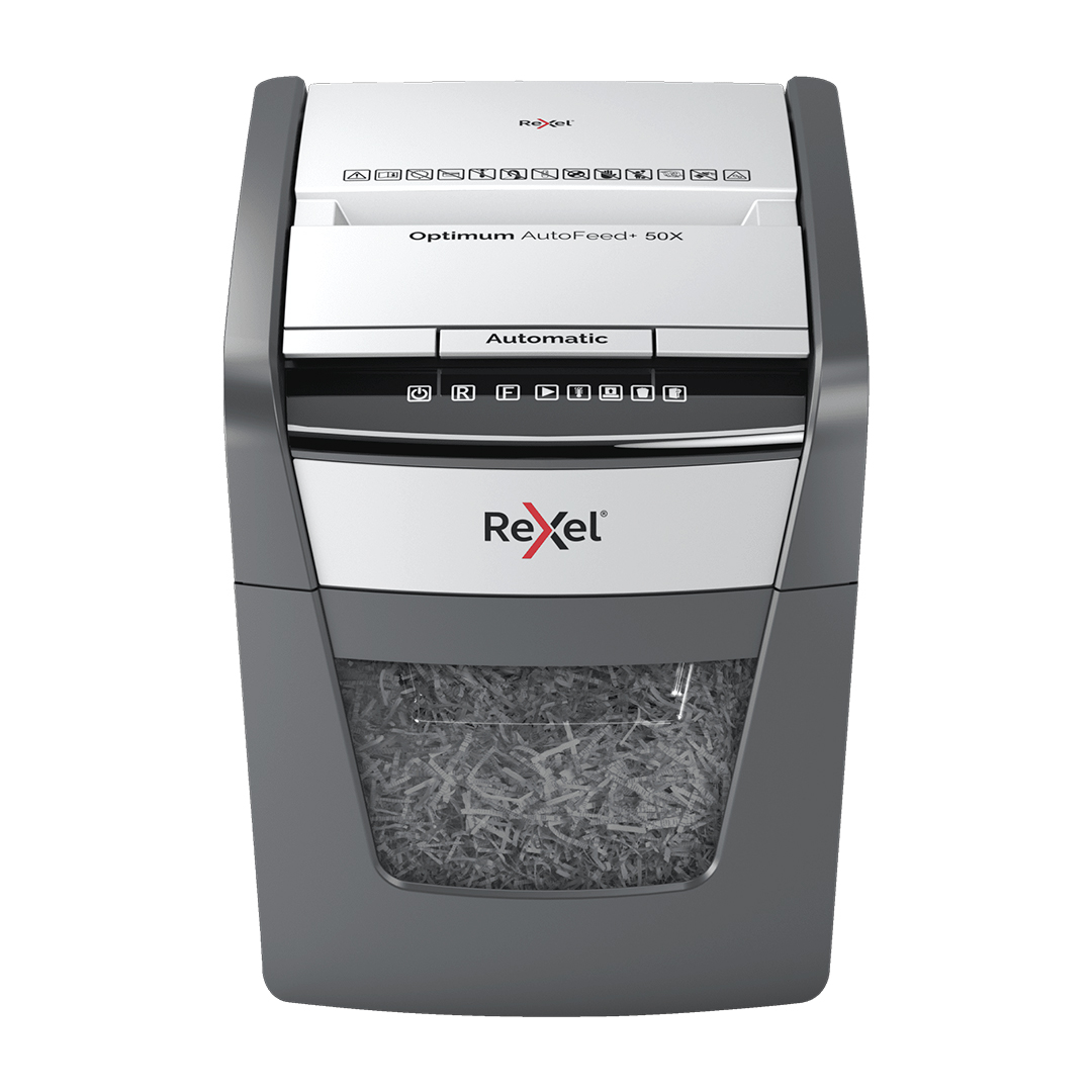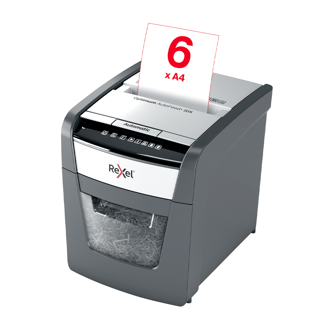 La destructora automática Rexel Optimum AutoFeed 50X es ideal para pequeñas oficinas o para el uso personal en el hogar, ofreciendo seguridad y eficiencia en la destrucción de documentos. Con su tecnología AutoFeed, permite destruir automáticamente hasta 50 hojas de papel (80 g/m²) en corte de partículas, brindando un alto nivel de seguridad y privacidad. Además, puede triturar tarjetas de crédito y grapas, lo que facilita la eliminación de materiales sin necesidad de preocuparse por retirarlas manualmente. Su diseño compacto la convierte en una herramienta conveniente y eficiente para el espacio de trabajo.