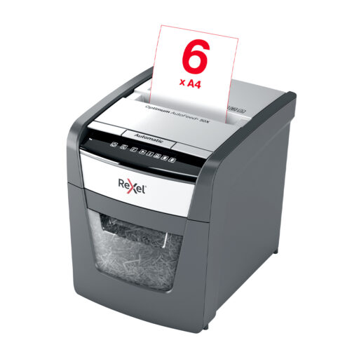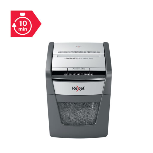 Esta destructora ofrece un funcionamiento silencioso, lo que es ideal para ambientes profesionales donde se requiere mantener la tranquilidad. También cuenta con un contenedor de fácil vaciado de 20 litros que puede almacenar hasta 100 hojas trituradas, haciendo que la gestión de desechos sea sencilla y rápida. La Optimum AutoFeed 50X está diseñada para maximizar el tiempo de trabajo y minimizar la intervención del usuario, permitiendo mayor productividad.