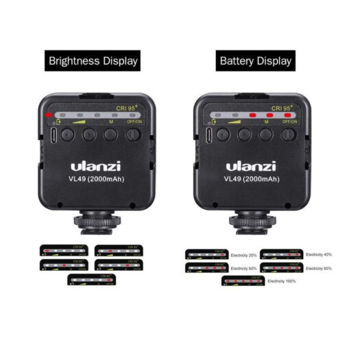Gracias a su diseño compacto y a la batería recargable de 2000mAh, la Ulanzi VL49 es perfecta para grabaciones prolongadas y sesiones fotográficas sin necesidad de depender de una fuente de alimentación externa. Su cuerpo incluye una zapata fría que permite montar fácilmente accesorios como micrófonos o cámaras, haciendo de este dispositivo una solución integral y portátil para diversas configuraciones de grabación. Además, los tres niveles de brillo ajustable te ofrecen mayor control sobre la intensidad de la luz, adaptándose a diferentes necesidades de iluminación.