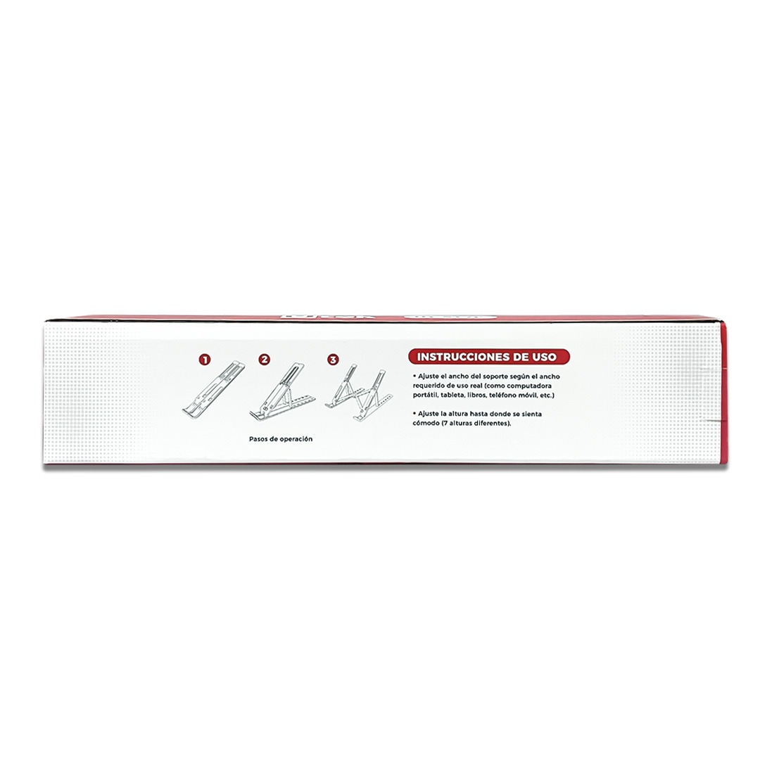 Este soporte ergonómico eleva tu notebook para mejorar la postura y reducir la tensión en cuello y hombros. Su diseño plegable permite un transporte cómodo, ideal para uso en casa, oficina o al aire libre. La base de silicona antideslizante asegura estabilidad, mientras que la aleación de aluminio ofrece resistencia y durabilidad.