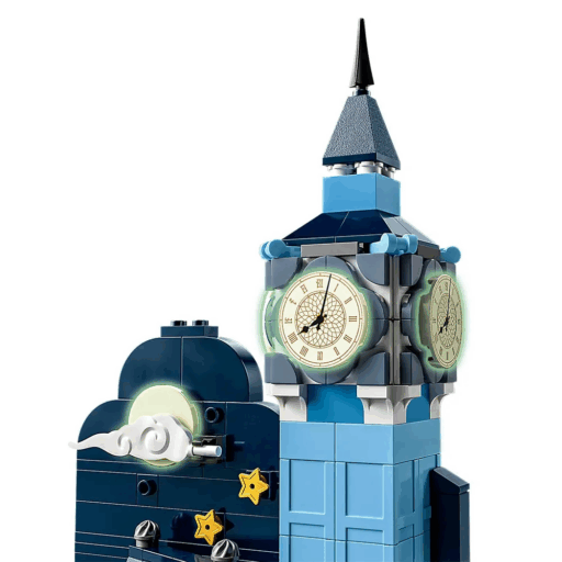 • Creatividad en una caja: Este set de 466 piezas incluye un modelo de parte de una ciudad con la torre del reloj, 3 minifiguras LEGO® | Disney, una figura LEGO de un animal, 4 elementos que brillan en la oscuridad y opciones de juego o exposición.