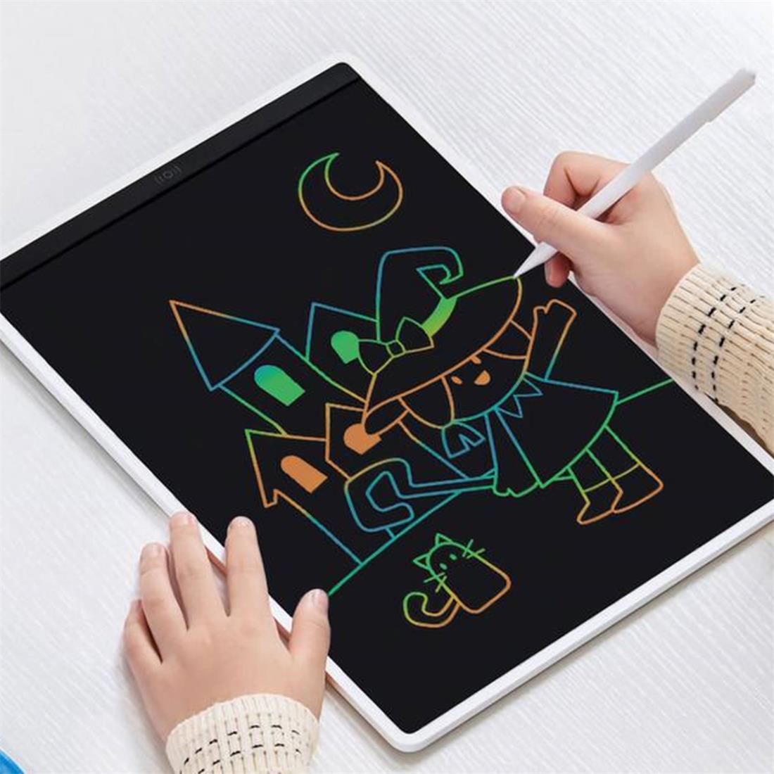 La Xiaomi Mi LCD Writing Tablet 13.5″ es una pizarra electrónica diseñada para escritura y dibujo sin tinta ni papel. Su pantalla LCD permite trazos sensibles a la presión, brindando una experiencia similar a escribir en papel. El lápiz óptico magnético se adhiere al dispositivo, evitando pérdidas. Con un diseño delgado y liviano, es fácil de transportar y almacenar. Su batería de larga duración solo se consume al borrar la pantalla, ofreciendo hasta un año de uso con una sola pila de botón. Es ideal para tomar notas, bocetar o como pizarra de mensajes familiares.